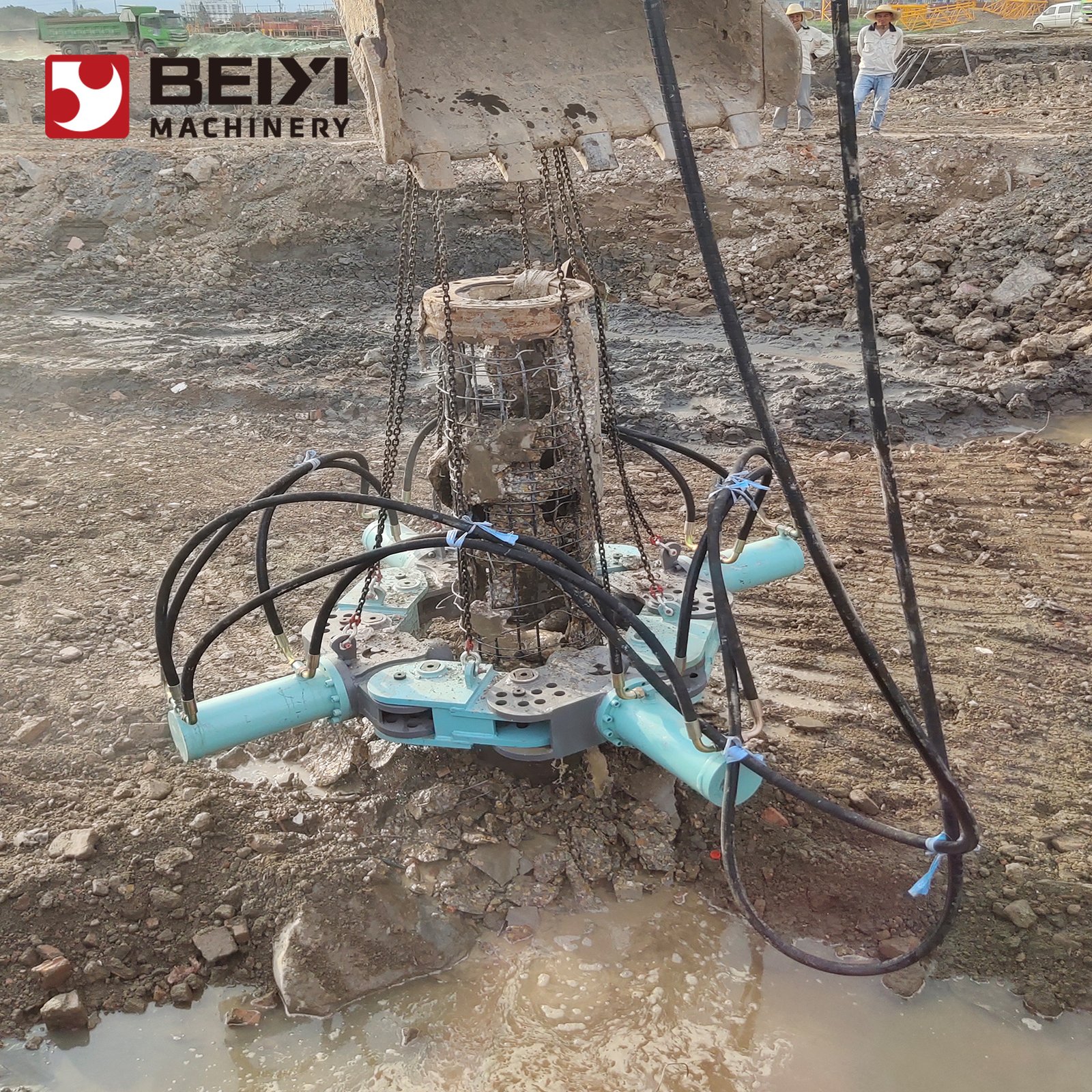 With a Beiyi pile breaker, it takes only 4 minutes to break one square pile and 10 minutes to break one round pile.