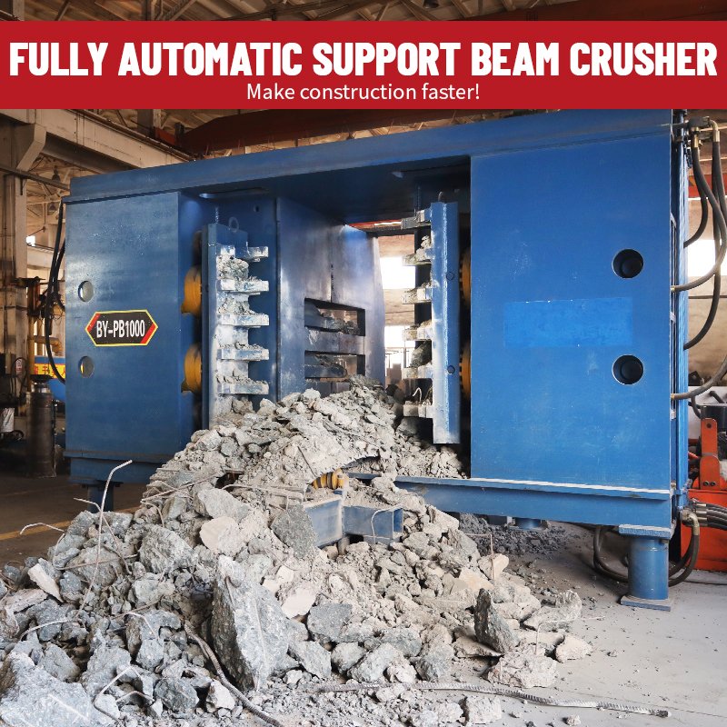 Fully Automatic Support Beam Crusher Designed for crushing and dismantling concrete strut beams after cutting operations.