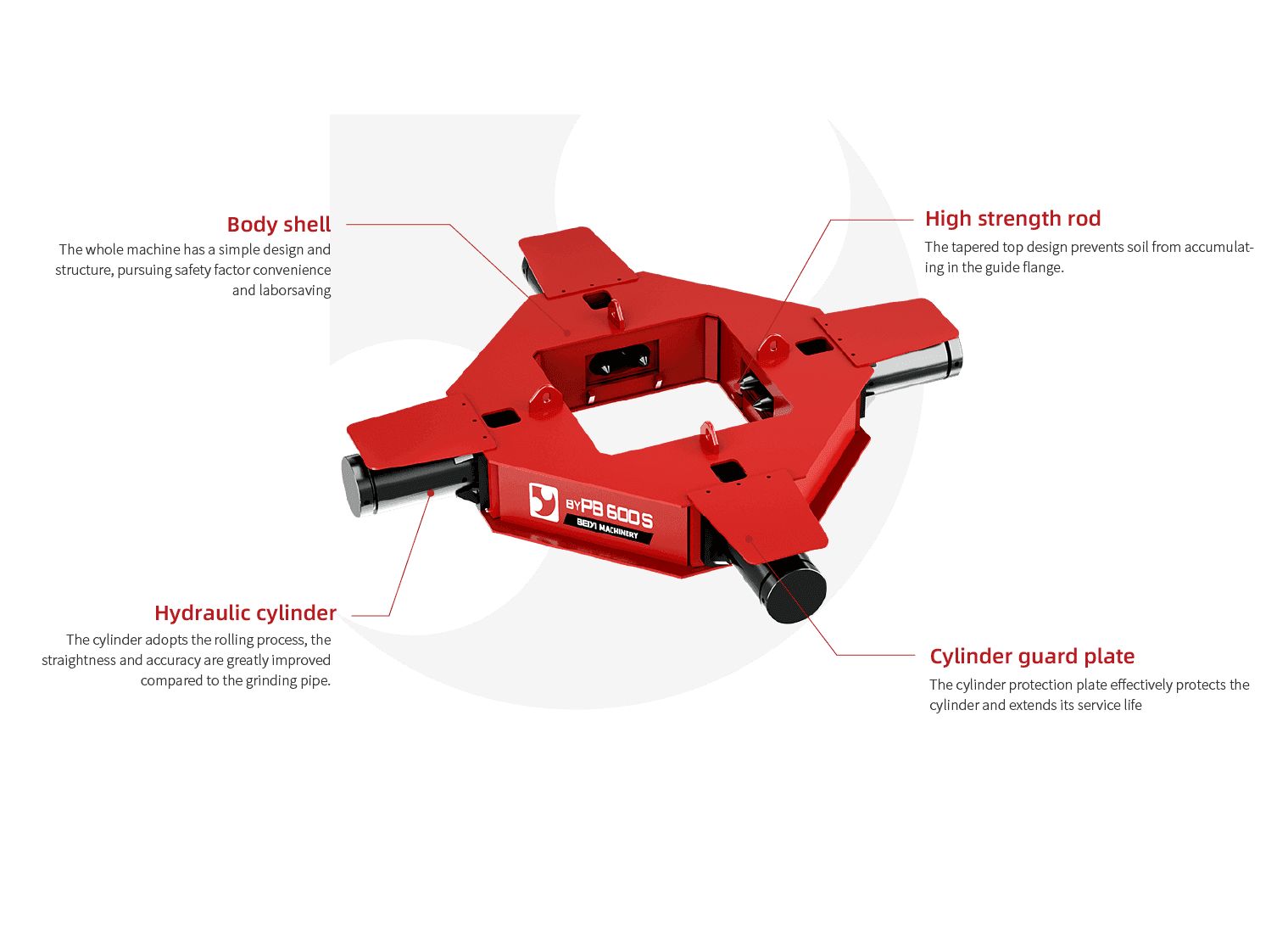 The hydraulic pile breaker is designed for pile head removal of cast-in-place piles and precast piles, and is widely used in high-speed railway bridge projects, industrial buildings, and civil foundation construction.