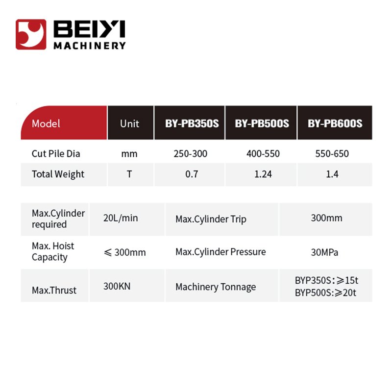 Square pile breakers are designed for piles with side lengths between 350 mm and 650 mm, meeting the requirements of various large-scale foundation works.