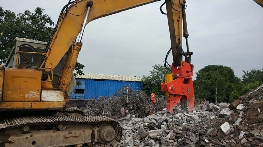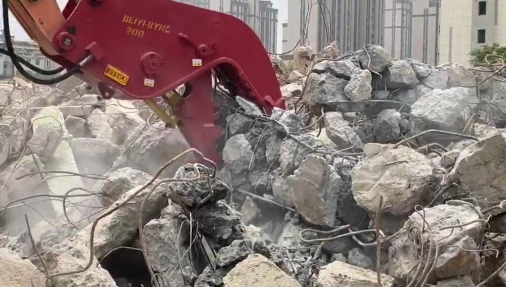 To address the above issues, the use of a rotating hydraulic pulverizer is recommended. Driven by the excavator’s hydraulic system, it enables simultaneous crushing and cutting of reinforced concrete structures.