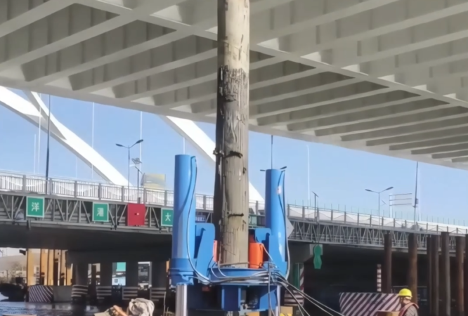 Hydraulic Casing Extraction Under Bridge | Steel Casing Removal on Water Platform
